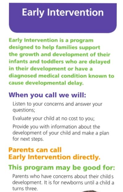 An Early Interventionist helps families understand their child's development and gives specific training to assist the family in addressing these areas of delay.